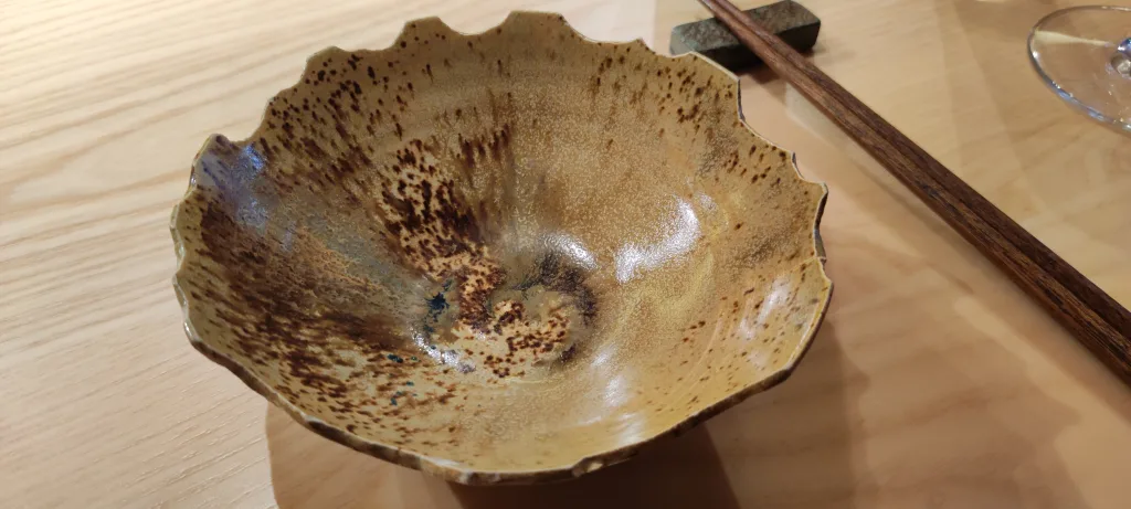Aquí la máxima japonesa de la comida kaiseki (comida tradicional japonesa), de que los alimentos se empiezan a disfrutar con la vista, se encuentra en cada detalle. Comenzando por la estética wabi sabi de los originales cuencos y platos, elaborados en exclusiva para KINU por Pell Cerámica, ceramista de Tarragona.