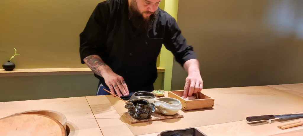 A medida que avanza el tiempo (y todo sea dicho, el número de copas de sake también), el ambiente se distiende, empiezas a compartir impresiones con los demás comensales y el propio Pedro se abre para hacerte partícipe de su historia profesional en este apasionante mundo.