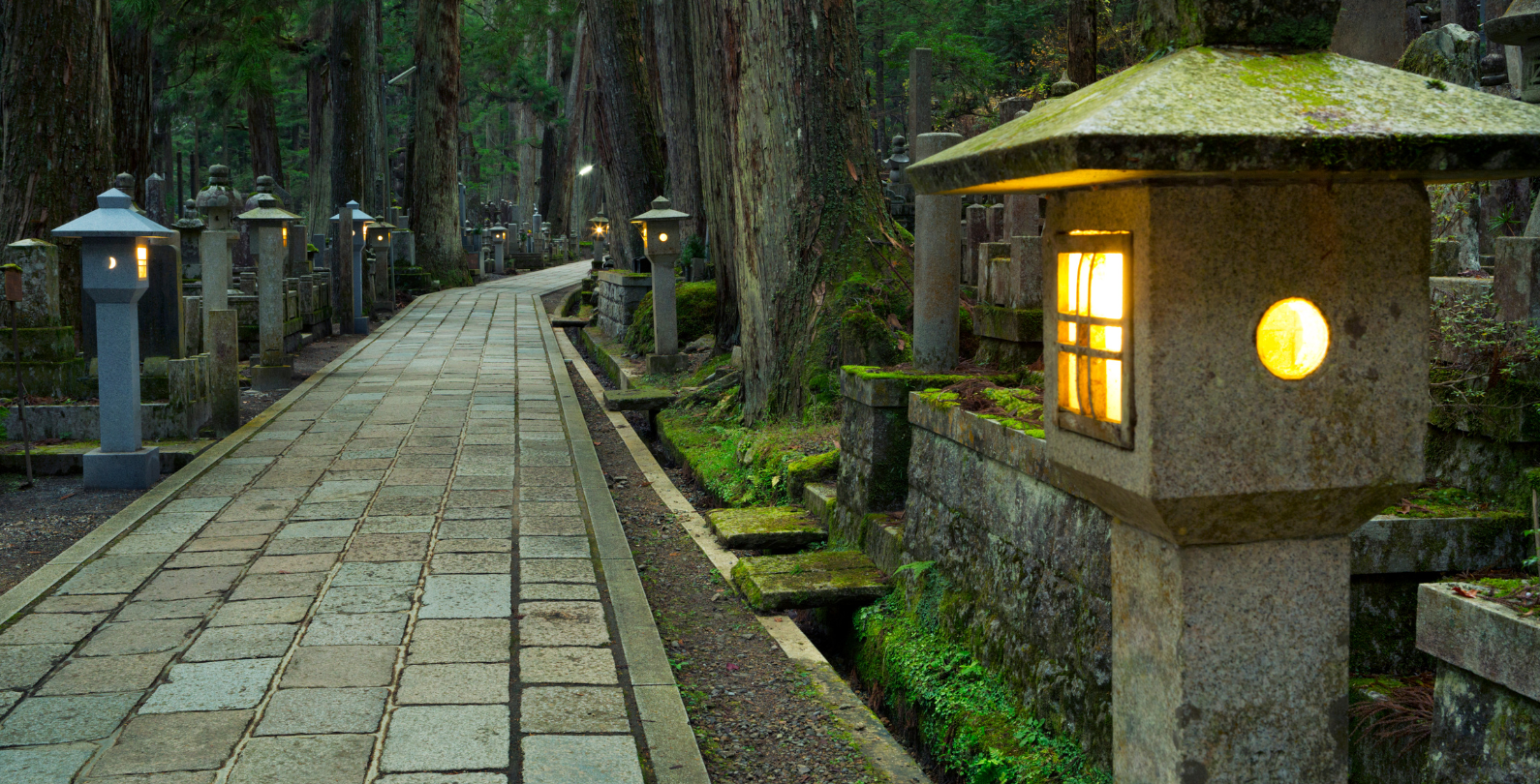 Según la creencia del budismo shingon, Kobo Daishi no está muerto, si no en una meditación eterna hasta el día en que el Buda Miroku traiga la salvación de las almas.