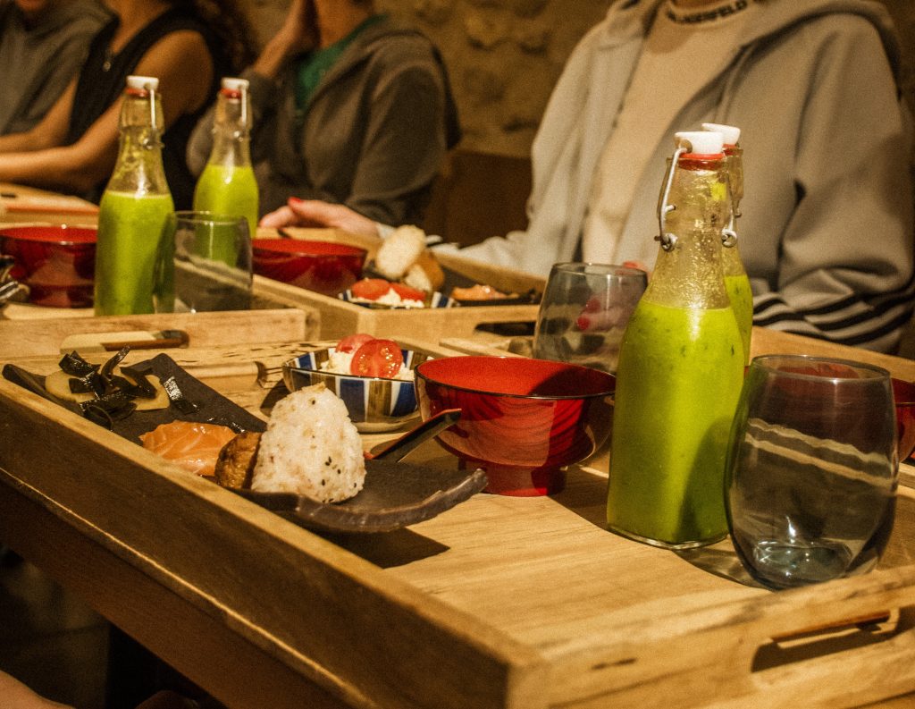 Incluso en el desayuno, puedes optar por probar la opción japonesa, consistente en sopa de miso, un surtido de onigiri y a veces salmón y otra tamagoyaki (la tortilla dulce). ¡Ah! Y de beber un zumo verde que para mi sorpresa estaba riquísimo.